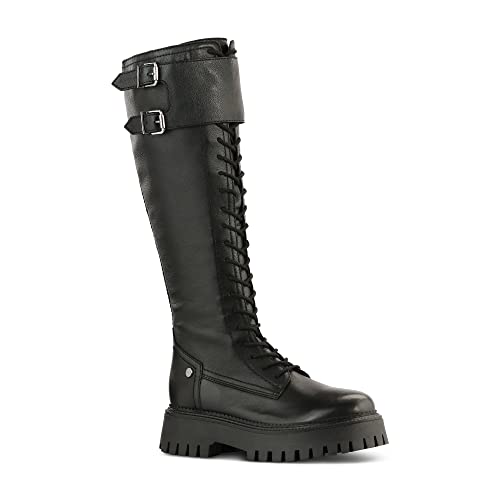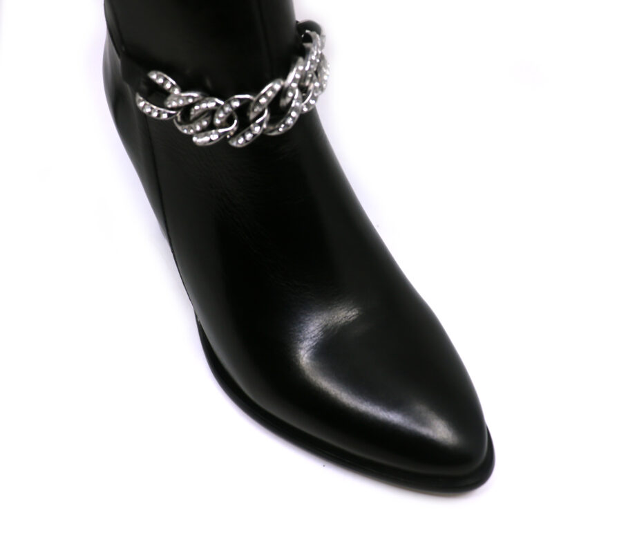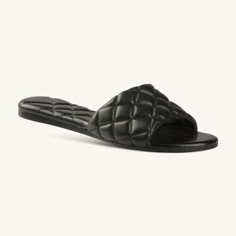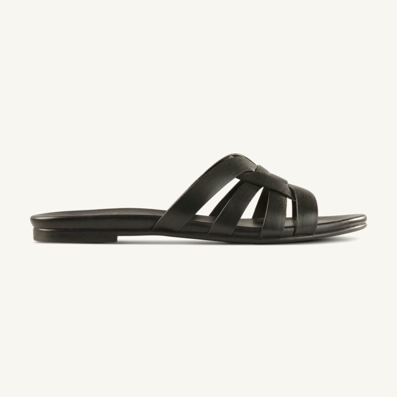 Bojra Black Interlocked Leather Strap Slide Sandal