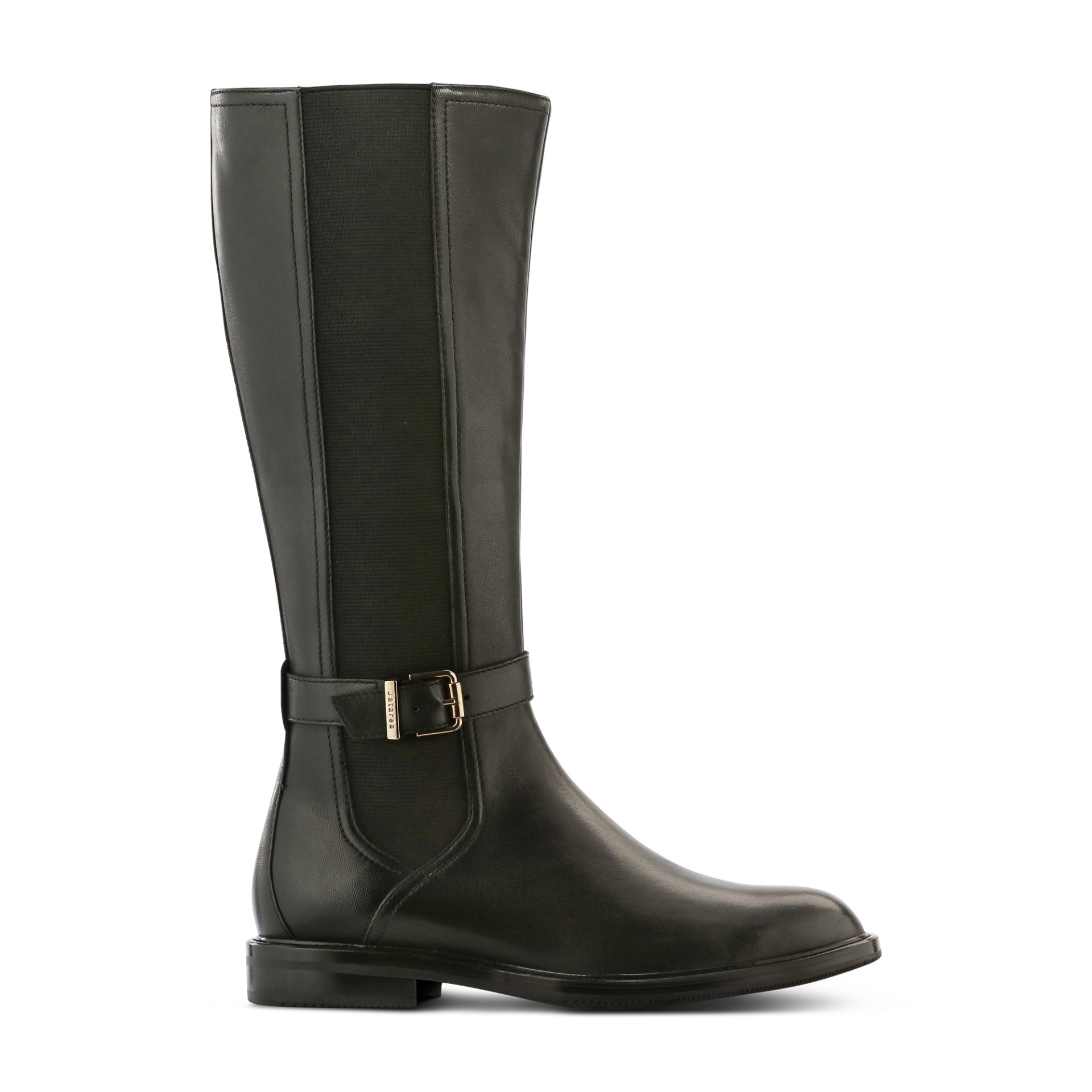 BINNI- impeccable leather knee-high boots featuring long elasticated panel with Jatarea Gold buckle belt is a unique fusion of riding & Chelsea boot. Crafted from softy sheep napa leather, the slick rounded-toe shape provides a nostalgic yet modern mood. Pair them with tucked-in skinny jeans or swishy midi skirts and prepare to look chic and chisele