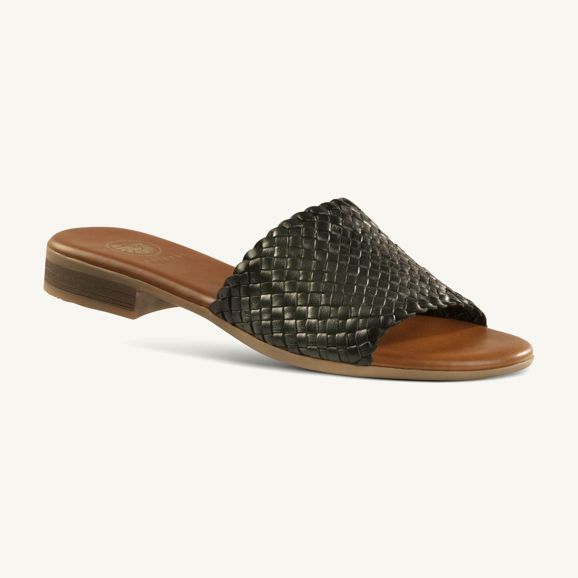 Be the first to review “Chanda Black Leather Interlaced Slide Sandal” Cancel reply