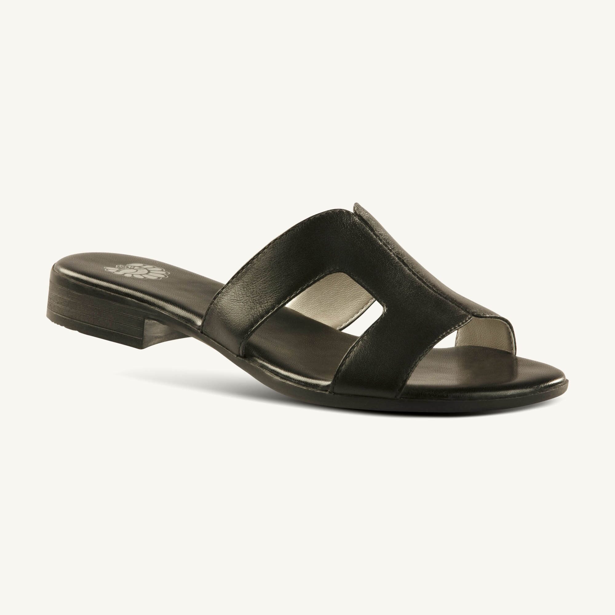 Trendy color leather & crape outsole with hand-painted stack look heel for modest lift. CHONCOLA Slide Sandal adds an effortless chic look to any outfit.