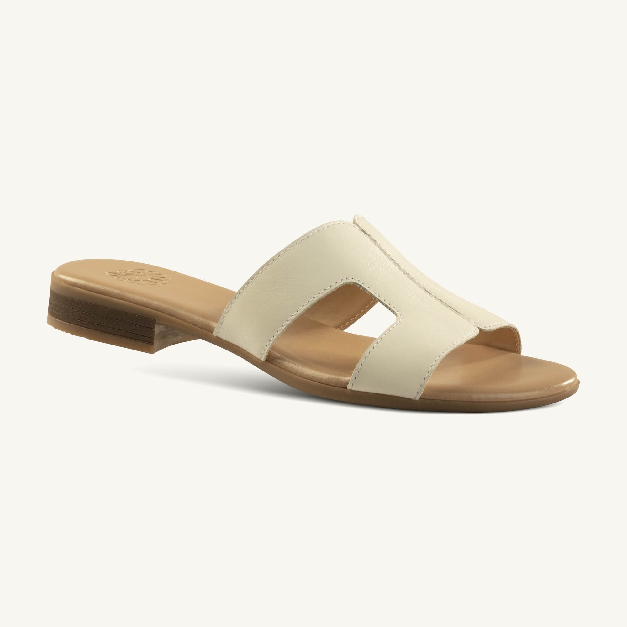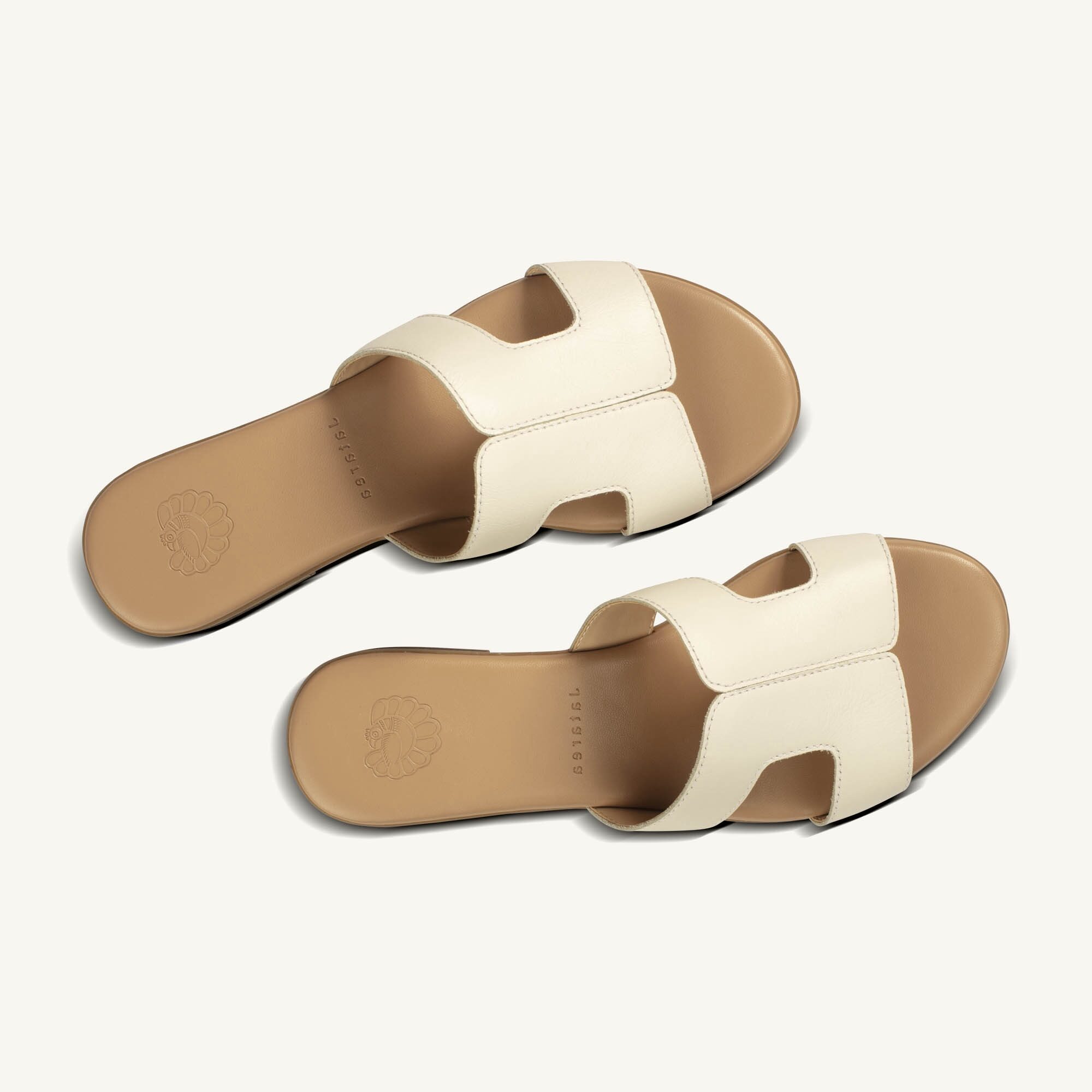 Baruna White Double Strap Leather Slide Sandal