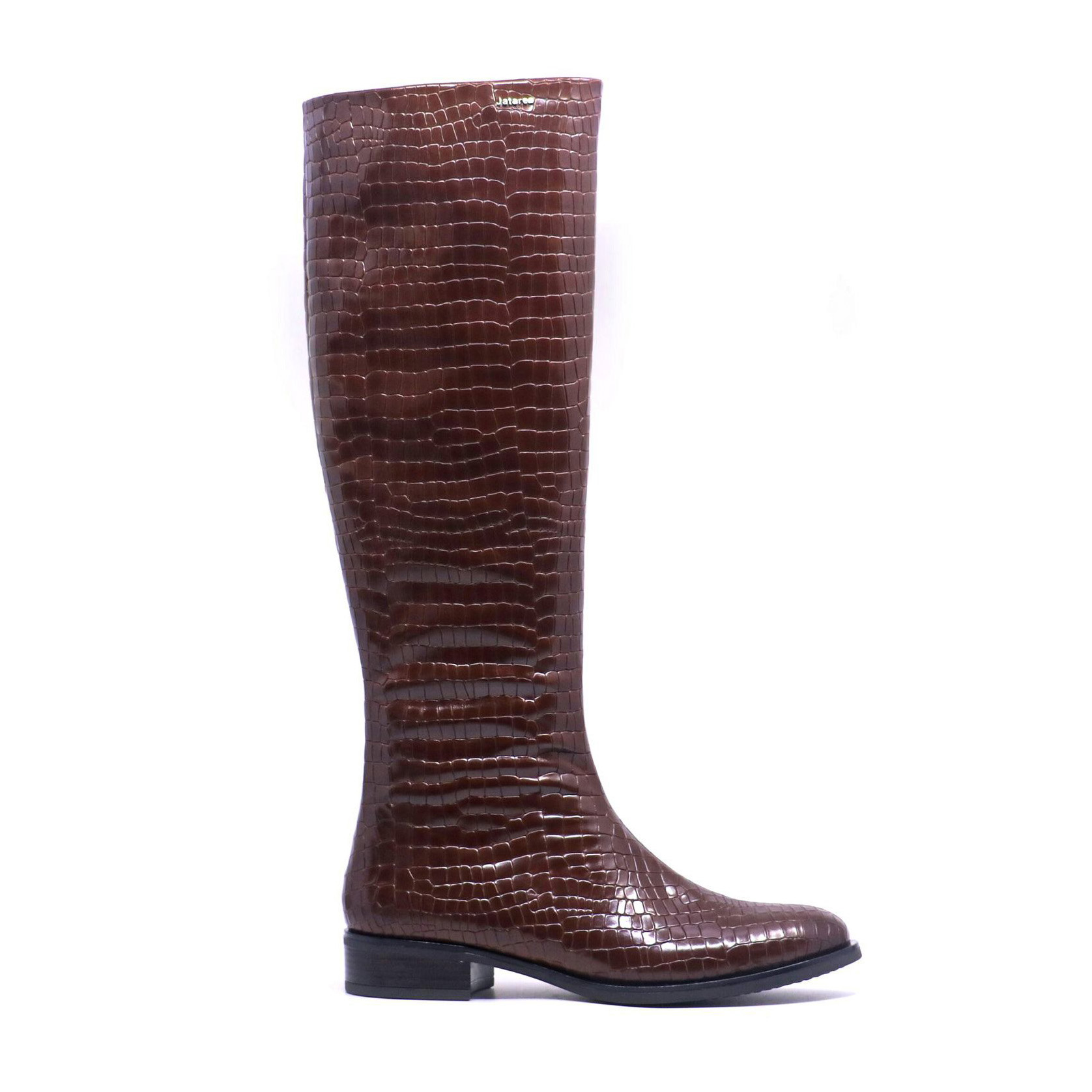 Level up your closet with “Noksha”. Genuine cow leather with an embossed crocodile texture lends these knee-height boots a luxurious Italian finish and a glossy sheen. This universally flattering style features side zipper closure for comfort and ease. Pair them with skinny jeans and a blazer now or bare legs and a tailored dress later for unstudied preppy elegance.