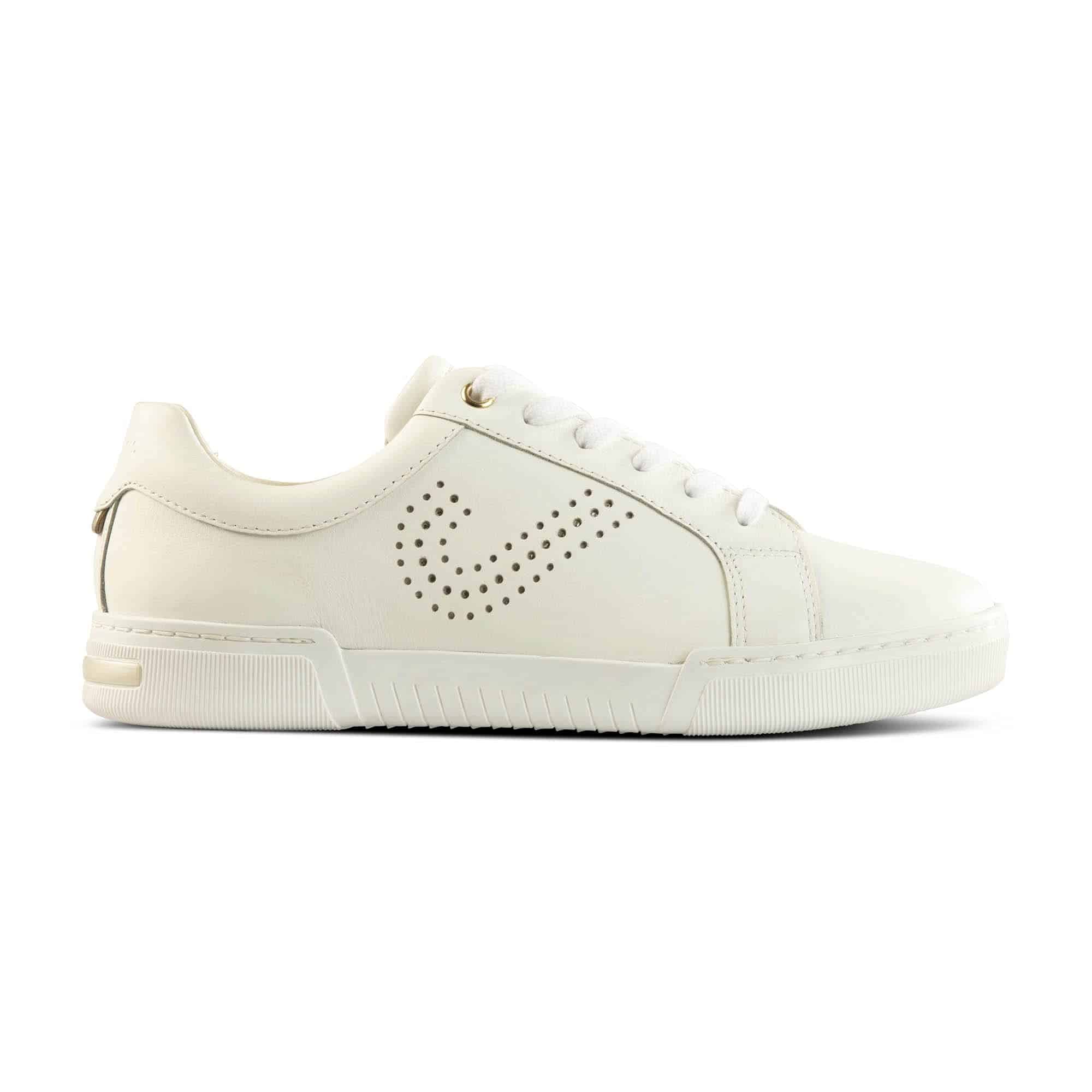 Complement all your casual looks with TORU white sneaker. This leather pair features a metallic accent on top eyelet, heel counter & perforated quarter for a subtle pop of shine! Green poron cushioned footbeds are removable