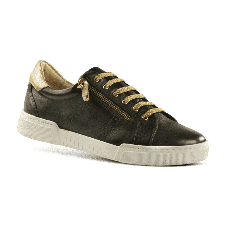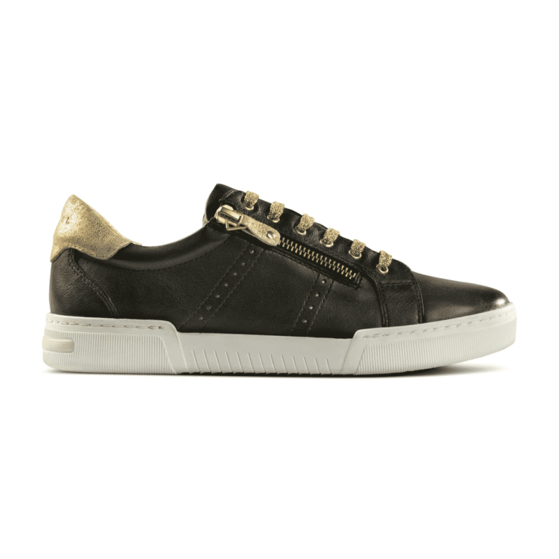 Tara Gold & Black Leather Low Top Sneaker